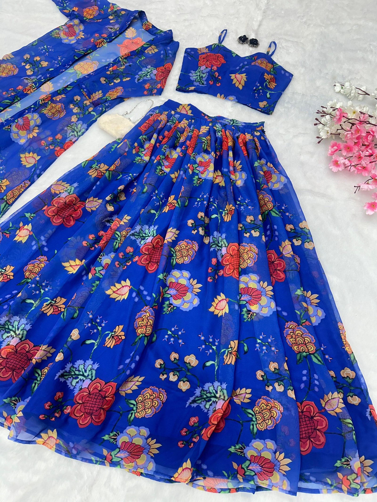 lehnga – Printed georgette lehnga with canvas patta and waist dori🌸 fully stitched huge flair lehnga